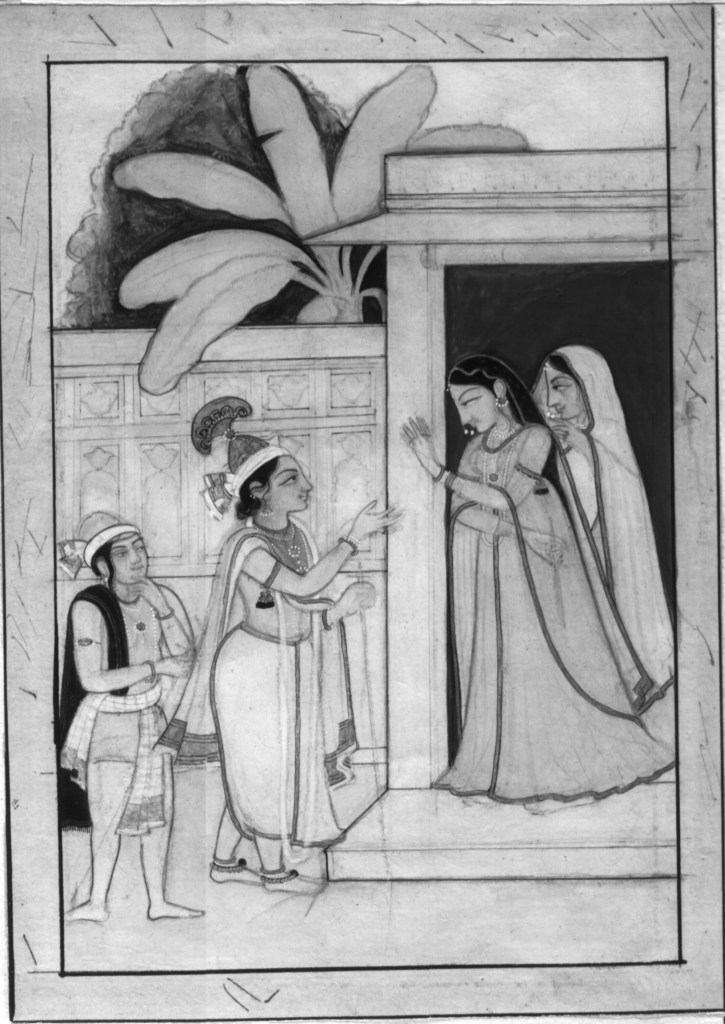 painting attributed to Chajju featuring Radha flirting with Krishna, Chamba, 1800, RP-T-1993-123.