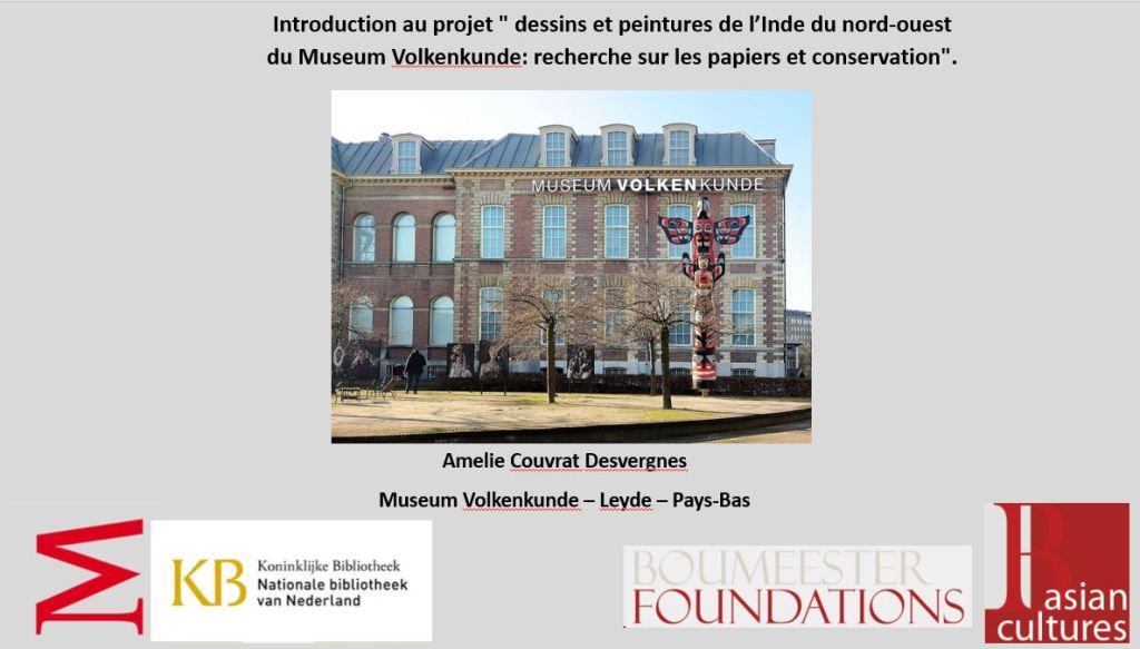 On October 13th, I had the great opportunity to present my ongoing project on the north-western drawings from the Museum Volkenkunde. During the study day entitled, Histoire du papier et de la papeterie, actualités de la recherche, I gave an introduction on the research project and the protocol I am implementing to examine and categorize the papers used in the Pahari regions for the production of drawings and paintings.