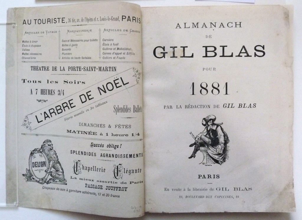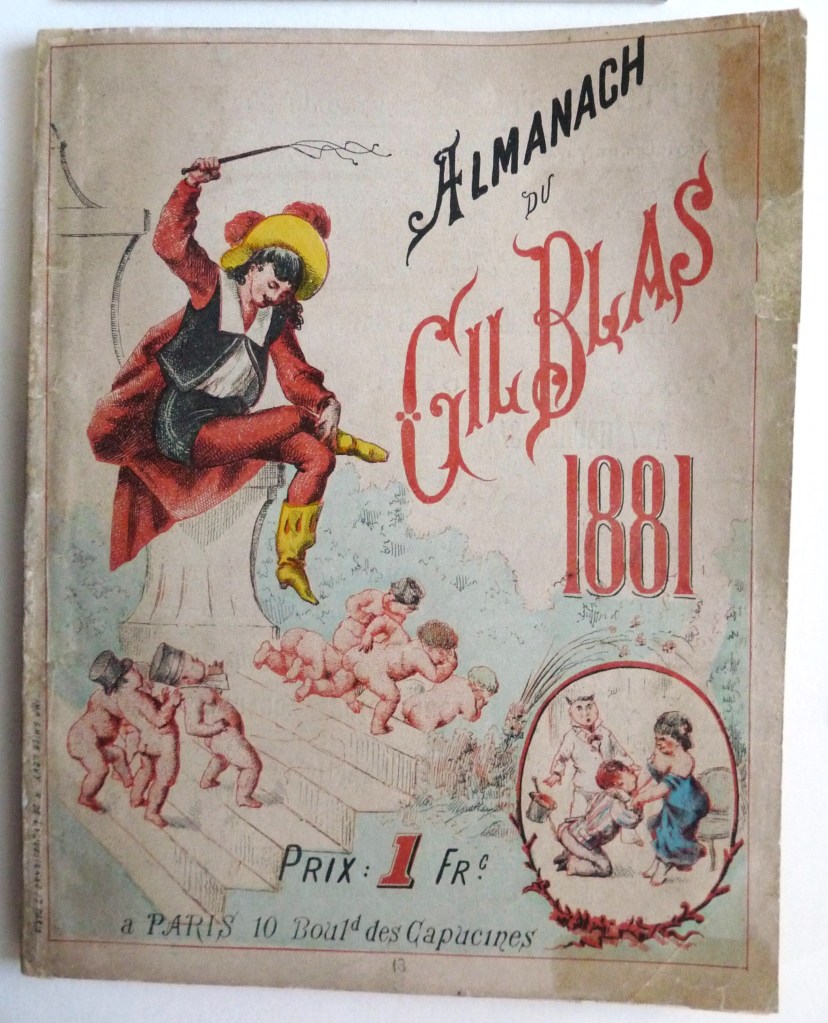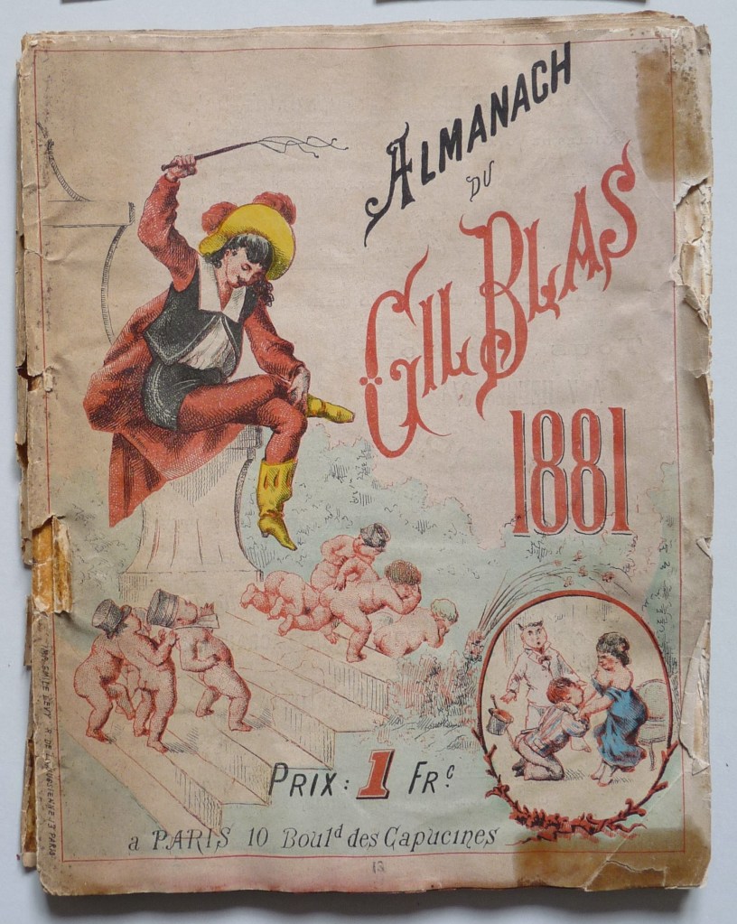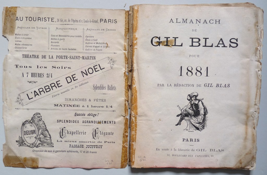 A few years ago I had to conserve this badly damaged Gil Blas Almanac from 1881.