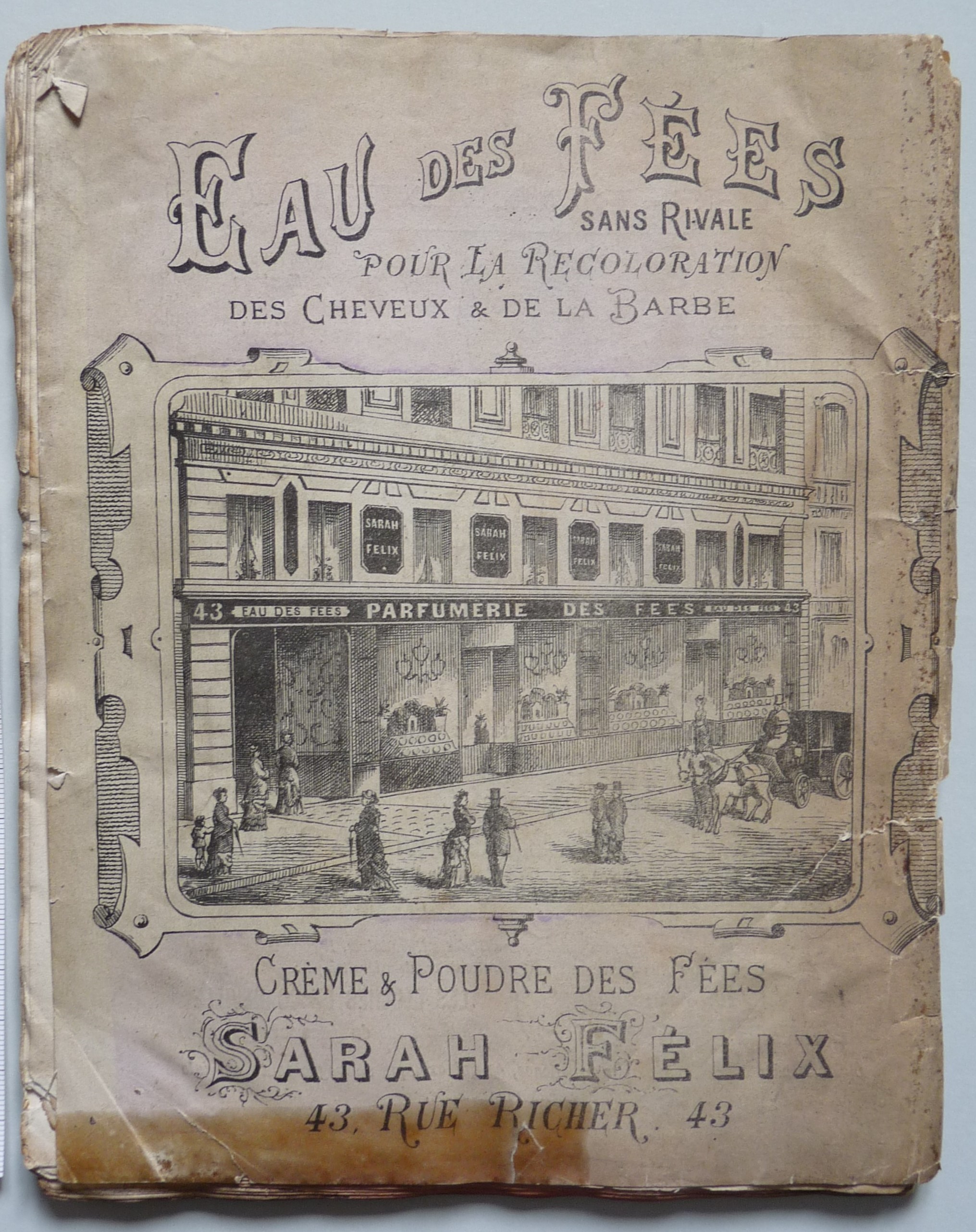 The merchandise on offer was varied and included stationery, political pamphlets, prints and image d’Epinal, poular images, dventure novels, fashionable song lyrics and calendars. Some booklets were covered with exquisite paste or woodblock printed papers, called papiers dominotés in French. As these almanacs are dated, they are a great resource for dating decorative papers.