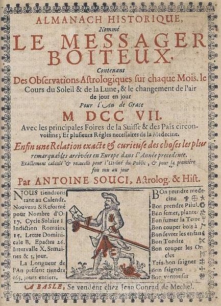 The word Almanac was borrowed from medieval Latin almanac which came from Andalusian Arabic الْمَنَاخ almanâḵ (« almanach »). It is an annual publication that contains an astronomical calendar with the phases of the Moon, the length of days, eclipses, etc., and various practical tips according to the seasons.It also contained various information such as the table of the various administrations and the list of persons attached to them, statistical documents, notions on currencies, weights and measures, etc. They were usually pocket-sized in order to save paper. In this sense, almanacs were ephemeral literature as they were destined to be discarded at the end of the year.This is why, in the 19th century, they were made with inferior printing paper.