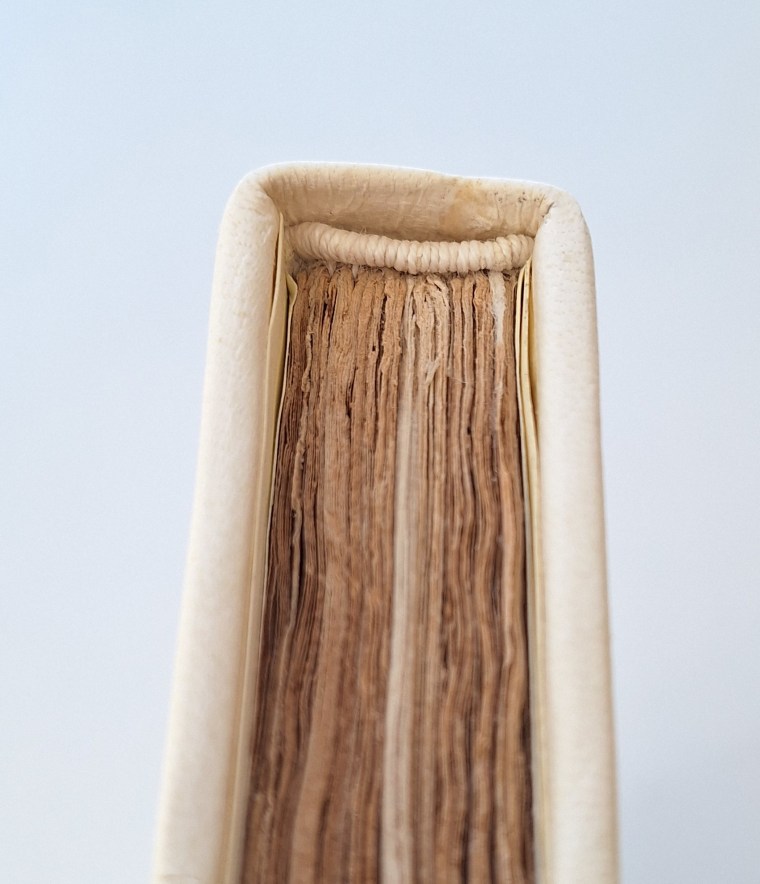 As the original binding of the register was in an advanced state of deterioration and its various poor quality elements such as the boards could not be reused, it was decided to carry out a BnF conservation binding. This binding offers an interesting alternative to the full parchment conservation binding: it is easier and quicker to produce and preserves the integrity of the manuscript while ensuring its durability.