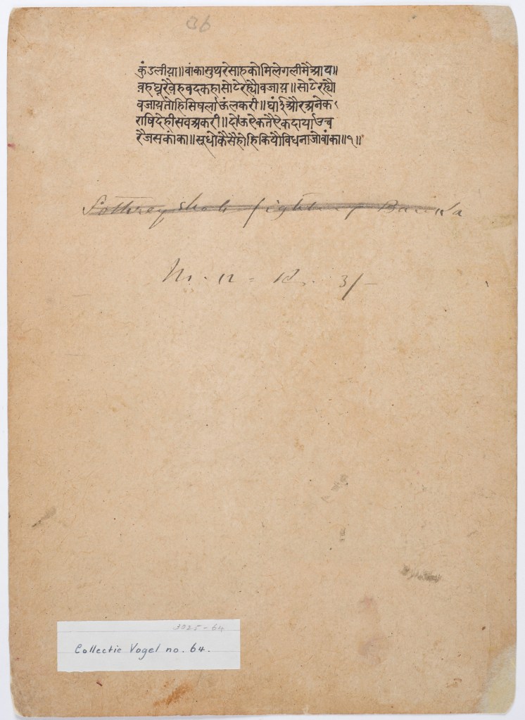 Paper conservation often leads to the discovery of fascinating objects. Take this rather enigmatic depiction on this folio from the Wereldmuseum in Leiden (inventory number RV-3025-64). The image shows a man mocking a dandy. The colourful drawing has been attributed to Nikka de Guler (c.1745–1833), the second son of Nainsukh de Guler, by Eberhard Fischer who also identified the scene.