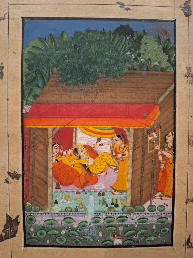 Last week I visited the exhibition Ragamala at the Rietberg Museum in Zurich. The exhibit features 50 stunning pieces, primarily from Rajasthan, offering visitors a glimpse into how artists blended poetry and music to create exceptional paintings that capture deep emotions and moods.The artworks are paired with verses of poetry, music, and bespoke perfumes, specially crafted for the show, enabling the audience to fully immerse themselves in the world of Ragamala painting. The harmonious fusion of sound and imagery creates a truly unique and sensory experience.