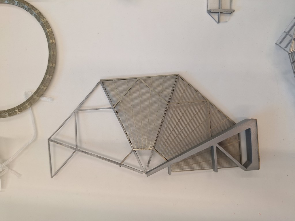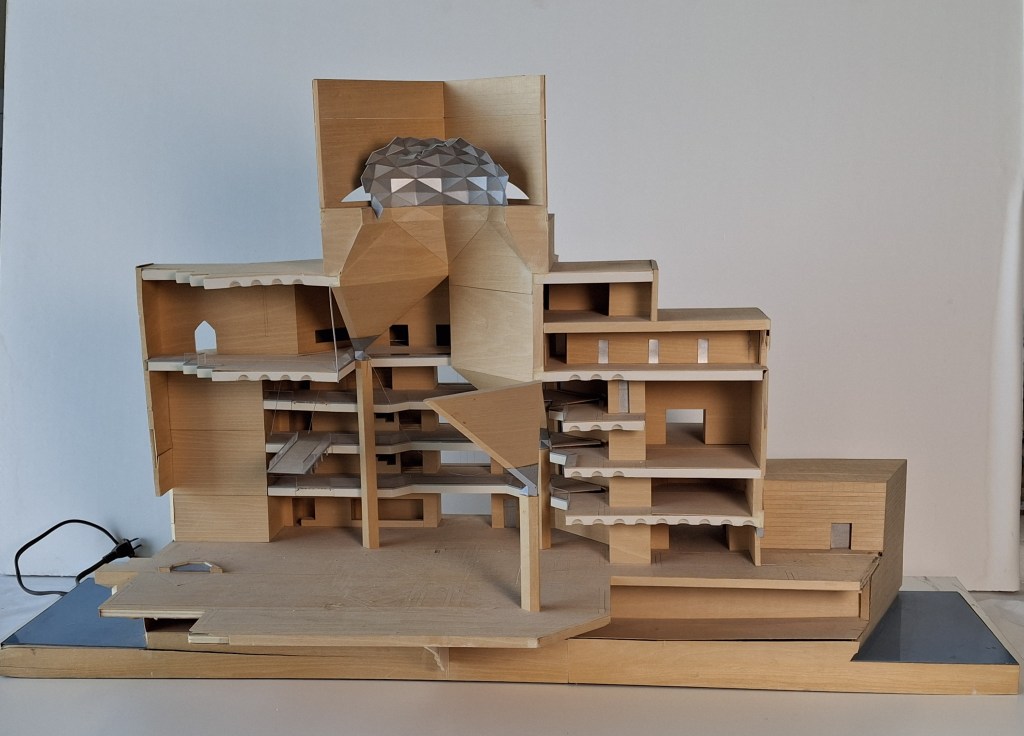 As a paper restorer, preserving this model proved quite challeging due to the nature of the materials used and the technical complexity of the object. It was made of veneer, white foam board for modelling, black foam for the interior of the base, Plexiglas or transparent plastic sheet, plastic, adhesive and metal. It was undoubtedly one of those projects “Beyond My Usual Scope, Within My Skillset”! that I was particularly delighted to have completed successfully!