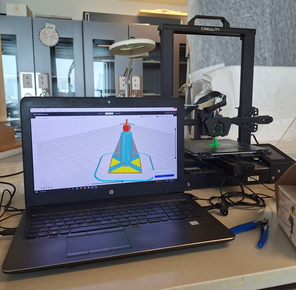 The missing pinnacle of the entrance canopy was recreated with 3D printing. This work was carried out by Jaime Escarate from EMPTY, which hired me for this project.